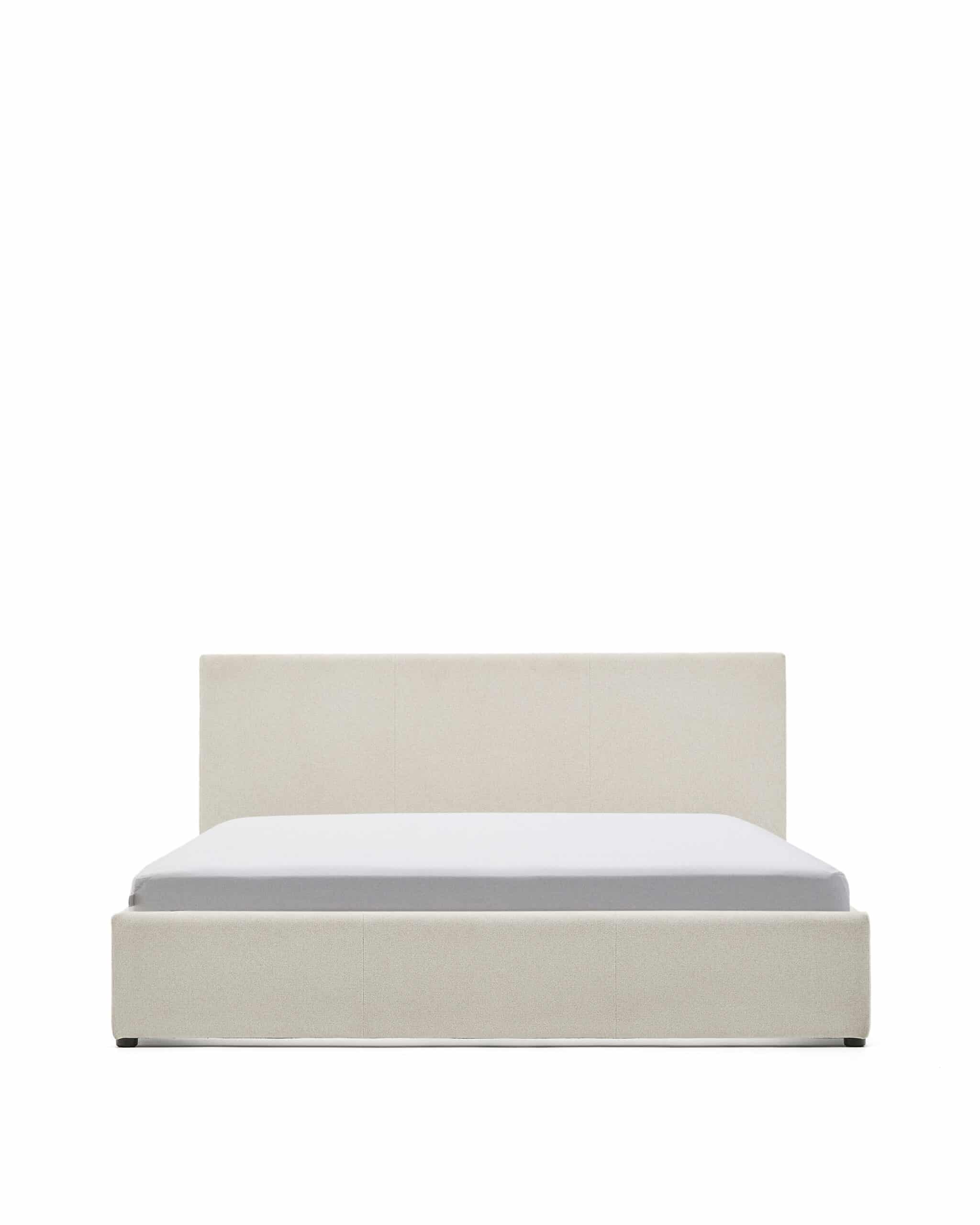 KAVE HOME Nahiri beige chenille seng med opbevaringsbund til 150 x 200 cm madras
